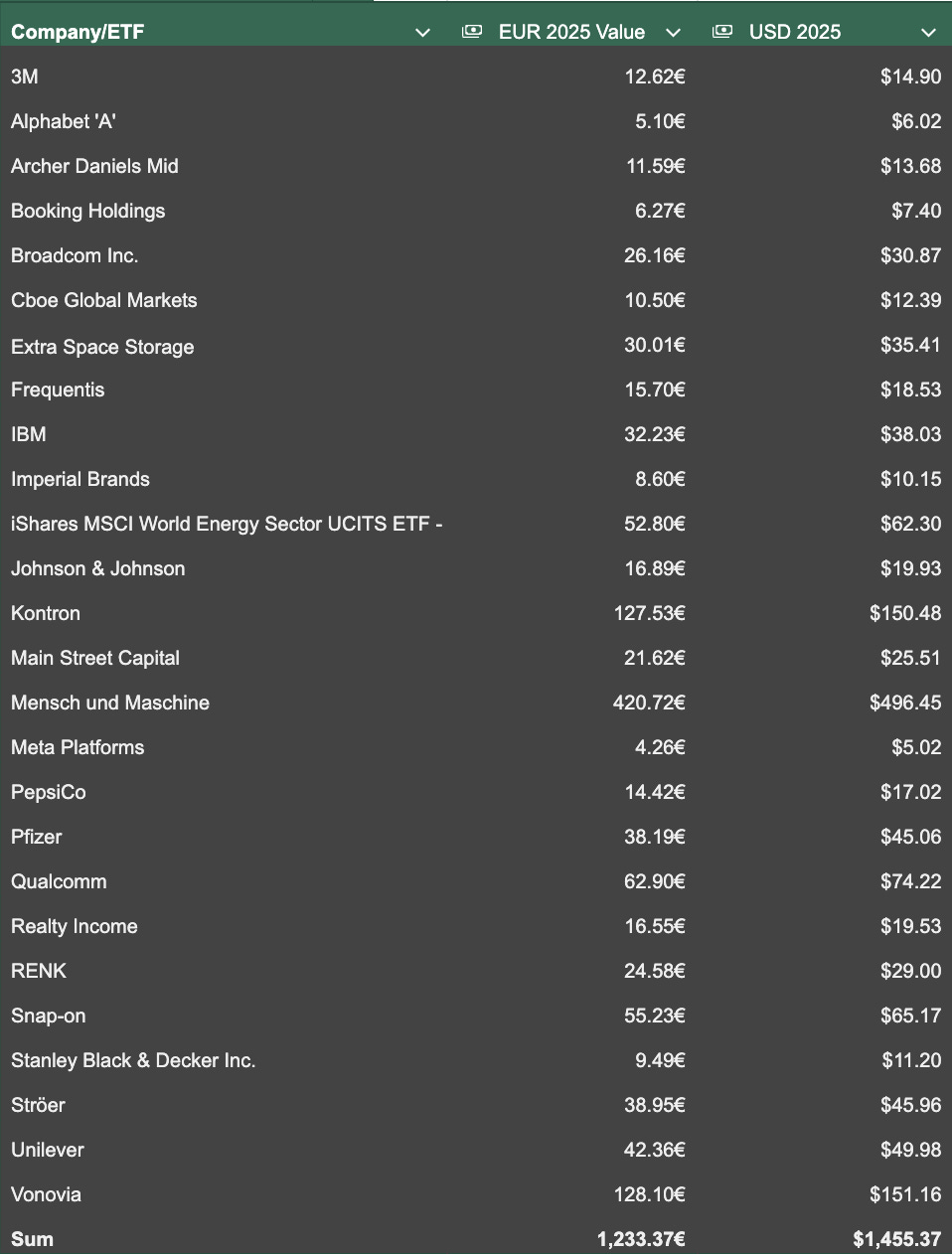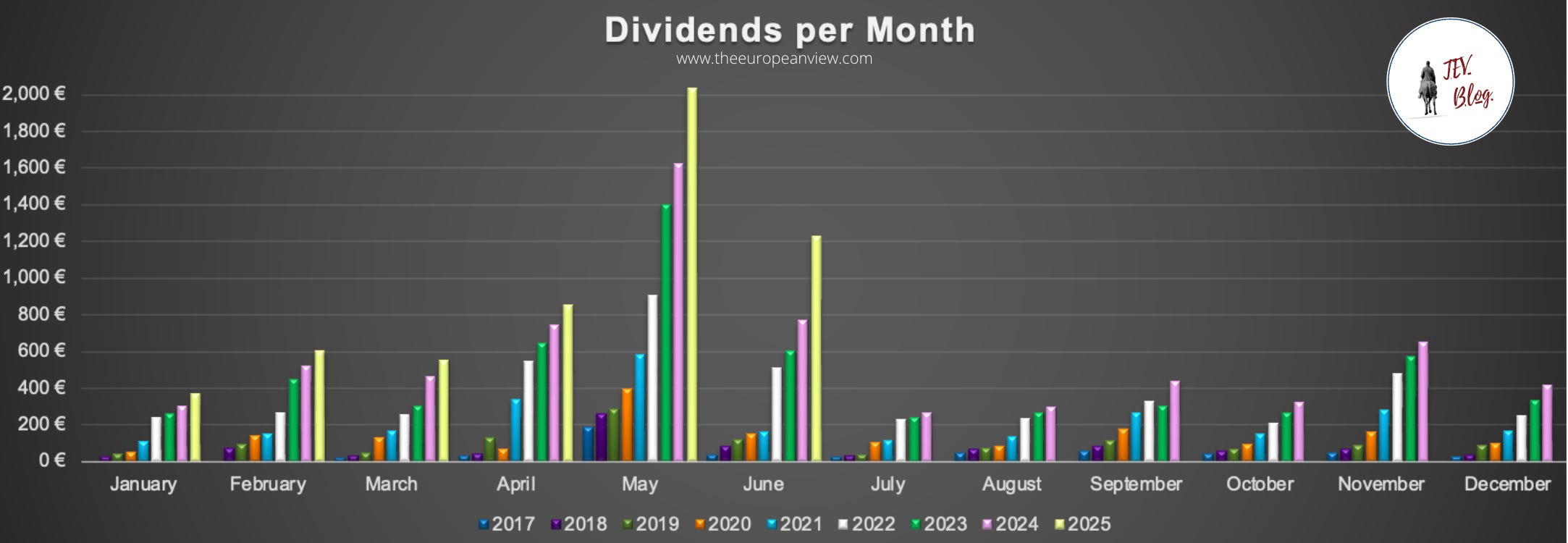 the total monthly income with dividends in June (after taxes) was: ⏠1,233.37 / appr. $ 1,455.37